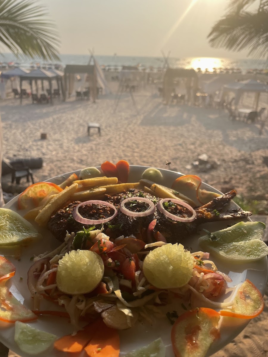 The inviting atmosphere of Sea Turtle Beach Cafe is perfect for unwinding, whether you're there for a casual lunch or a lively evening out. The laid-back, mellow decor enhances the beach experience, where the soothing sounds of waves set a tranquil backdrop for your meal. Patrons can enjoy an assortment of comfortable seating, with many tables boasting spectacular views of the famous Baga Beach, making it a wonderful spot to watch the sunset.