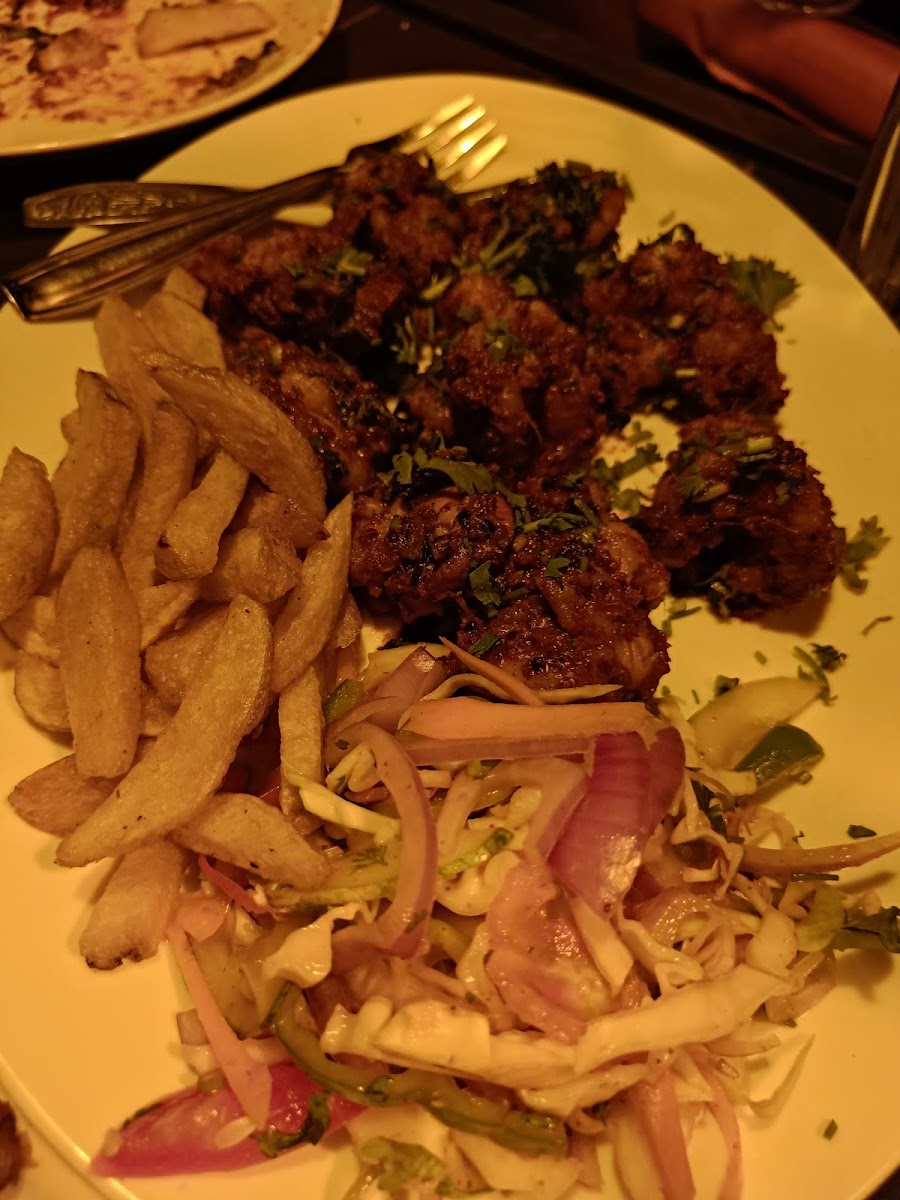 The menu features a tempting array of dishes. For those looking to indulge in a light salad, options like the Greek Salad or Seafood Salad are refreshing choices that brighten the palate. If you're in the mood for something heartier, you can't go wrong with the Chicken Tawa Fry or the delicious Paneer Pakoras. For those who love a good starter, try the Chicken 65 or Veg Manchurian – each provides a burst of flavor that's sure to please. And for the adventurous at heart, their vibrant shooters like the Flaming Lamborghini or Brain Hemorrhage offer a fun twist to your evening.
